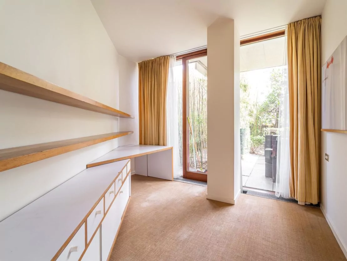 The garden, facing Avenue du Général de Gaulle, is crafted on various levels, with the upper part reserved for the ground floor apartment’s private use. This property is an architectural gem, perfect for those who appreciate modernist design and luxurious living.